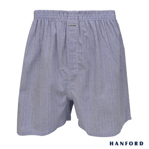 This Hanford men's woven checkered boxer shorts is made of 100% cotton. It has button lapel at front pouch area and covered with same fabric.