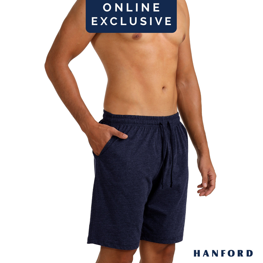 Hanford Men Casual Lounge Comfort Walking Drawstring with Pocket Shorts Dusten - Blue Melange (SinglePack)