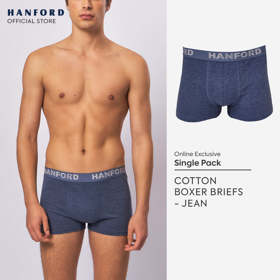 Hanford Men Natural Cotton Knit Comfort Boxer Briefs (No Spandex) - OG Jean (Single Pack) S-4X Big Plus Size