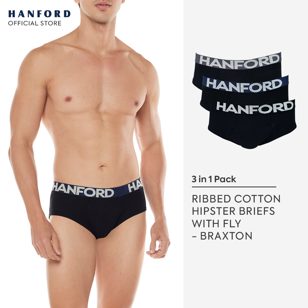 Hanford Men Premium Ribbed Cotton Modern Hipster Briefs w/ Fly Opening Braxton - Assorted Colors (3in1 Pack)