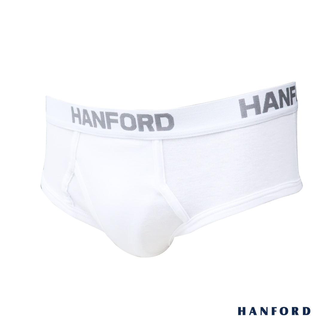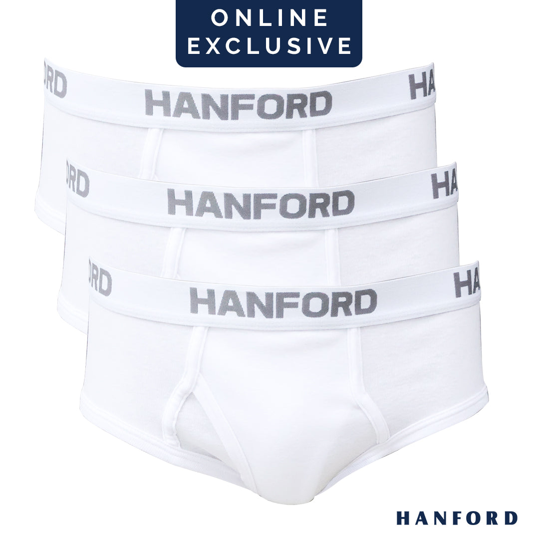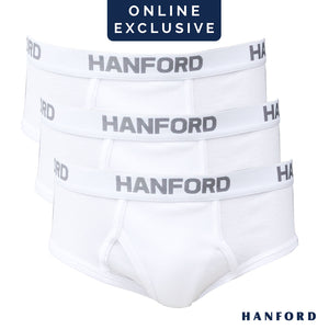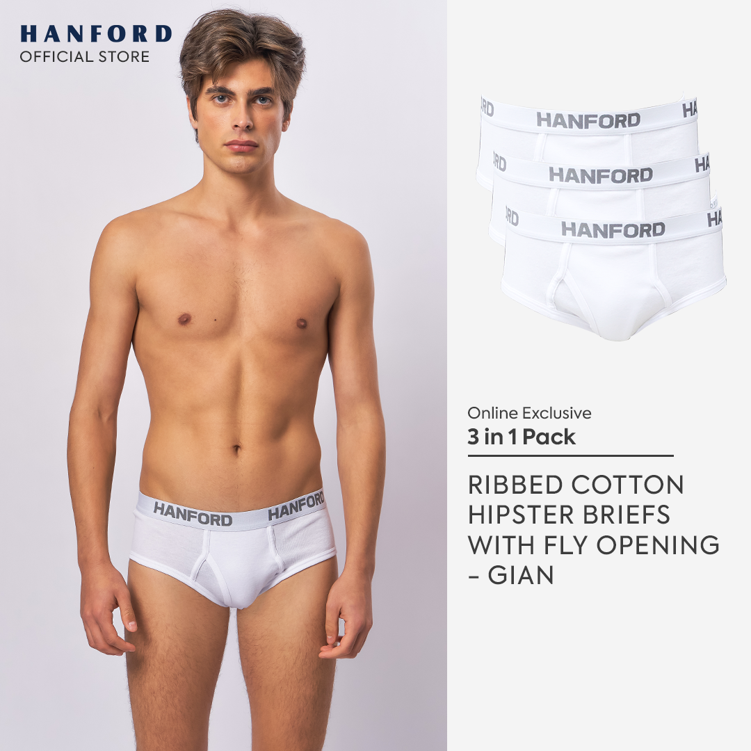 Hanford Men Premium Ribbed Cotton Modern Hipster Briefs W/ Fly Opening Gian - White (3in1 Pack)