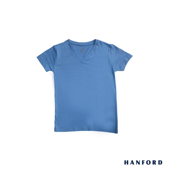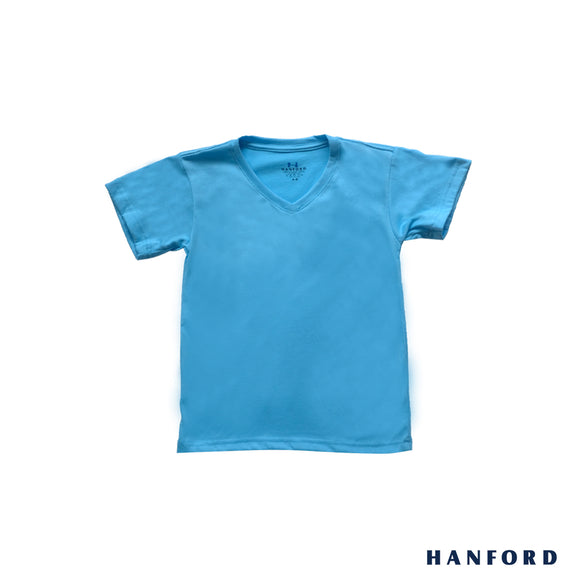 Hanford Kids/Teens 100% Cotton V-Neck Short Sleeves Shirt - New Blue (Single Pack)