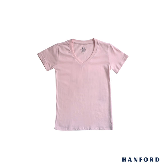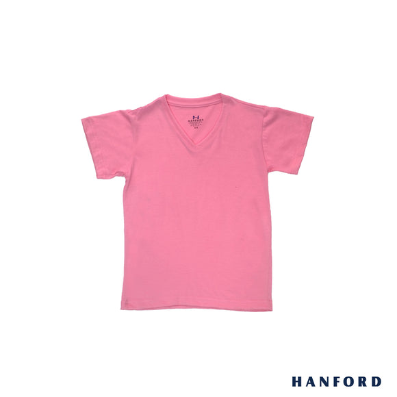 Hanford Kids/Teens 100% Cotton V-Neck Short Sleeves Shirt - Lt. Pink (Single Pack)