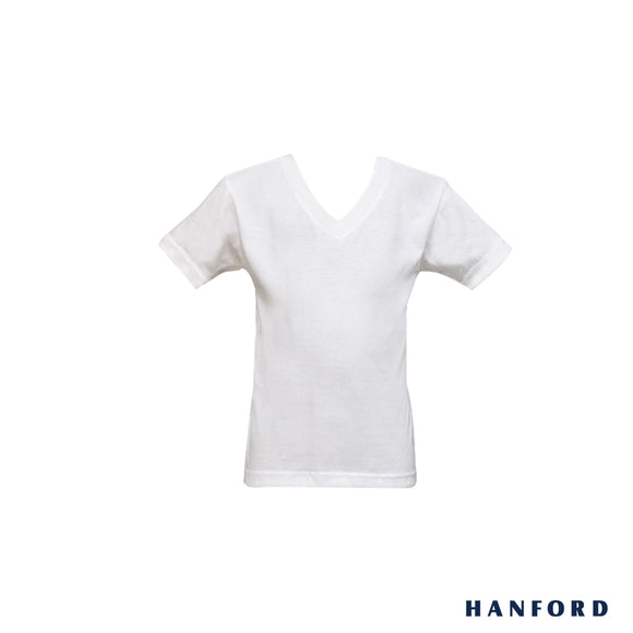 Hanford Kids V-Neck Cotton Single Jersey Short Sleeves Shirt - White (Single Pack)