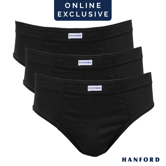Hanford Men Regular Cotton Briefs Inside Garter V313 - Black (3in1 Pack)
