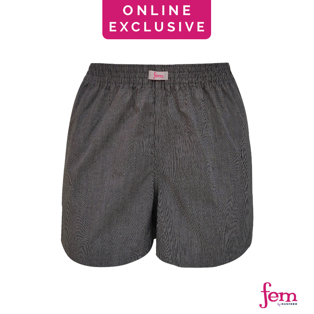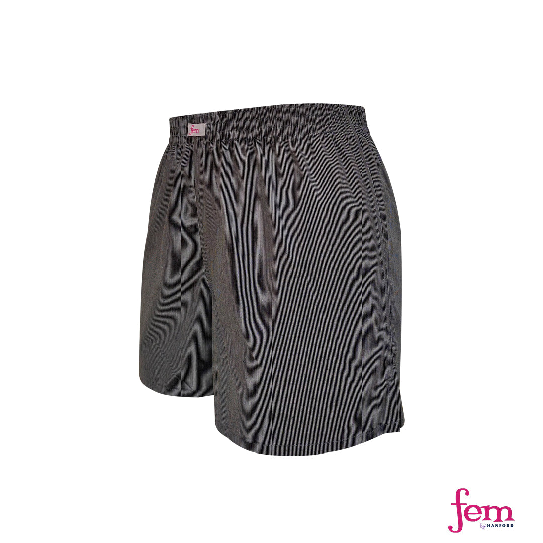 Fem by Hanford Ladies Women 100% Premium Cotton Woven Comfy Sleep Lounge Boxer Shorts Stripe FW3 (1PC)