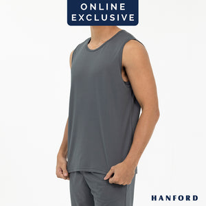 Hanford Athletic Men R-Neck Quick Dry Training Sport Active Mesh Sleeveless Shirt-Pewter Gray/Space Navy (SinglePack)