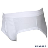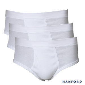Hanford Men Premium Ribbed Cotton Comforter Briefs w/ Fly Opening w/ Lycra Waistband - White (3in1 Pack)