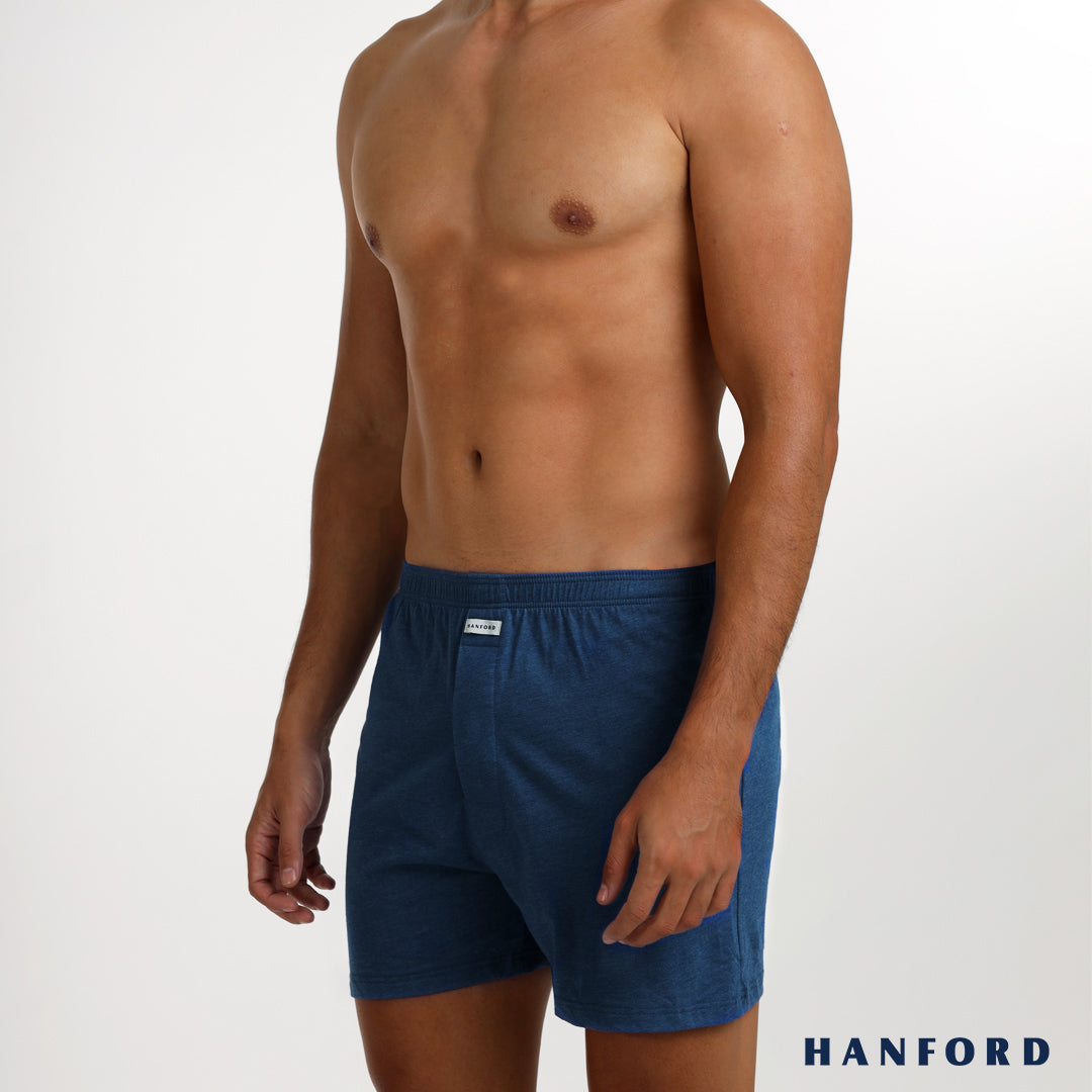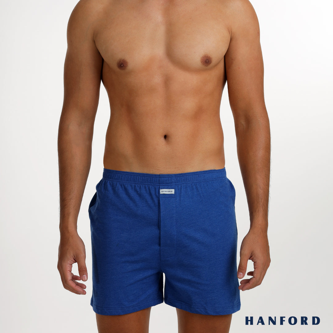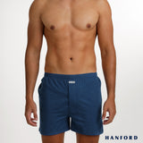 Hanford Men Premium Cotton Knit Lounge/Sleep/Boxer Shorts - Carib/True Blue/Denim (Single Pack)